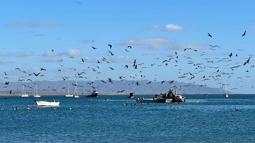 Was sofort auffällt ist der offenbare Fischreichtum der Bucht: noch nirgends haben wir so viel Seelöwen und vor allem so viele Pelikane gesehen: