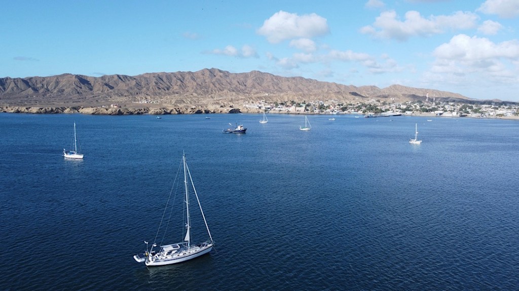 Und wieder 50 Seemeilen nach Süden. Schönes Gennakersegeln. Rechtzeitig vorm Dunkelwerden laufen wir in die geschützte Bahía Tortugas ein. Bei den nordwestlichen Winden bietet sich der Ankerplatz vor dem Ort an, der einfach den Namen der Bucht trägt. Nur fünf Boote liegen vor Anker in der großen Bucht, zwei kommen in der Nacht noch dazu. Etwa die Hälfte der Crews sind Bekannte, die anderen lernen wir in den nächsten beiden Tagen kennen.