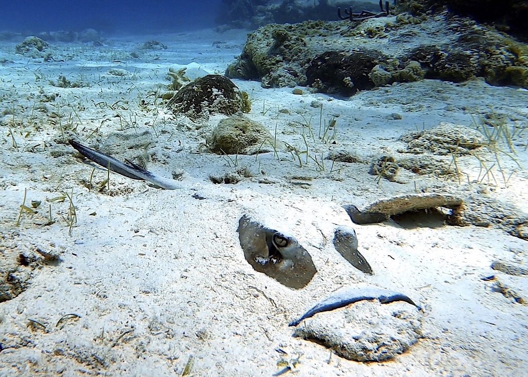 Schön auch, dass sich dort an den Fragmenten alter „Hurrikan-Ketten“ gerne kleine Fische sammeln. Diese Kettenreste sind eine Herausforderung für das Ankern in der Bucht, aber eine Attraktion für Tierwelt und damit auch für uns Schnorchler.