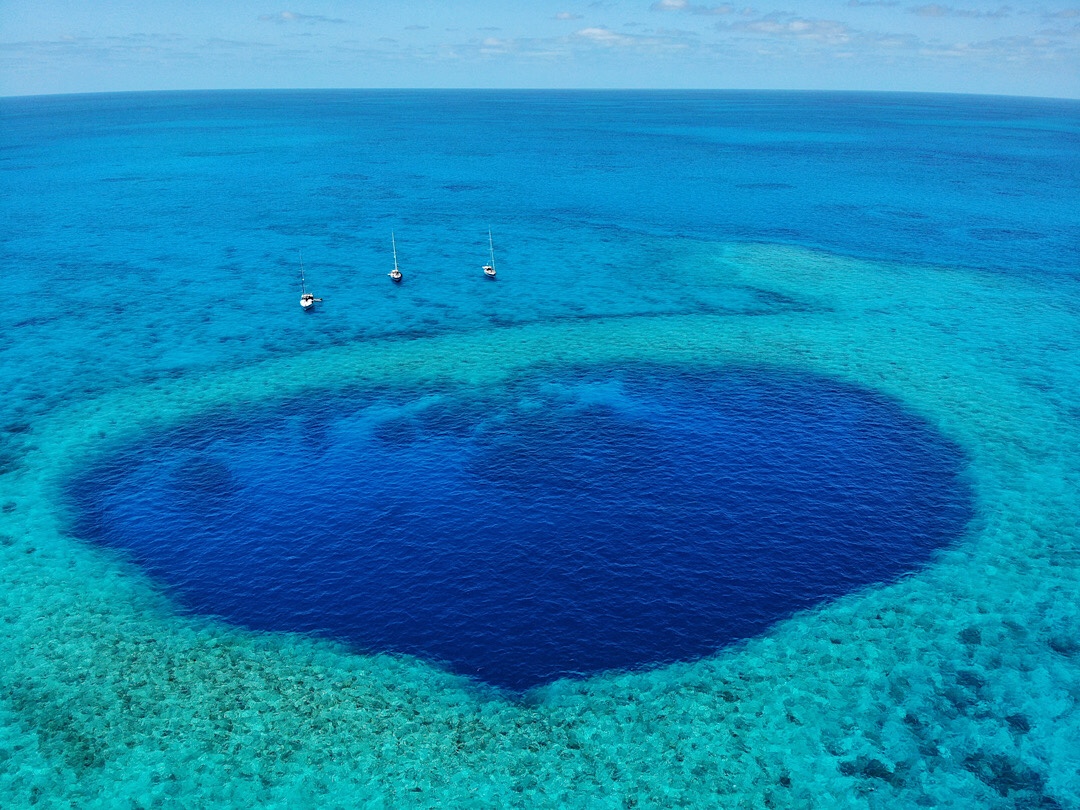 Nur eine Meile weiter das nächste Blue Hole, der nächste Ankerstop. Dieses Sinkloch ist kleiner im Durchmesser und auch nur rund 20 m tief, wir können beim Schnorcheln durchgängig den Grund erkennen. Das Blau leuchtet etwas heller, dafür ist aber der gesamte Rand fast durchgängig mit schönen Korallen bewachsen und es gibt entsprechend viele bunte Rifffische und auch Schwarmfisch zu bewundern. Auch hier wieder ganz herrliches Schnorcheln.