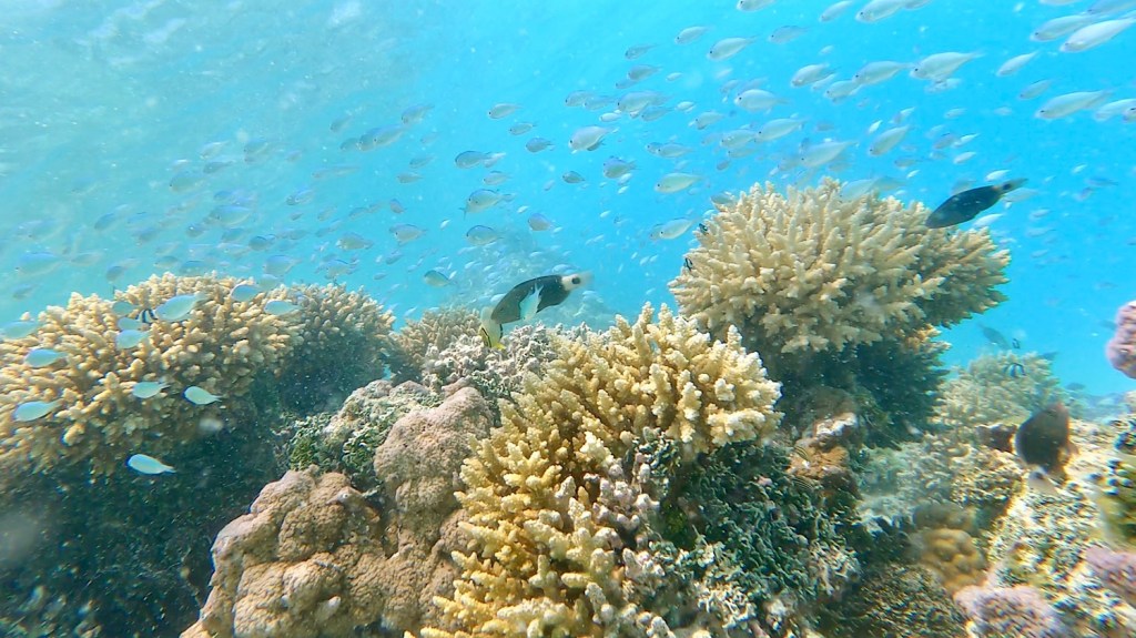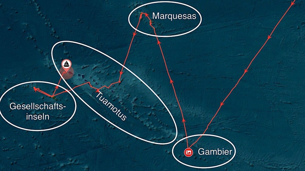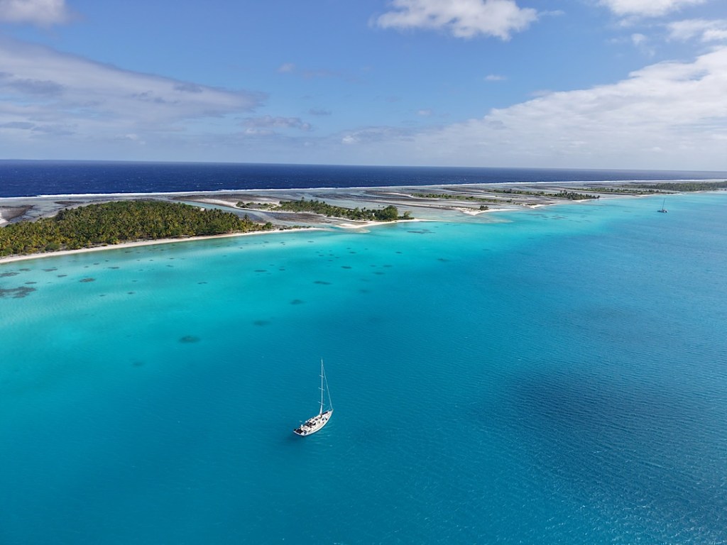 Bei schönen 14 kn hoch am Wind beginnt die Passage von Tikehau aus fast perfekt. Nur fast, denn der Windwinkel passt nicht ganz. Wir können unser eigentliches Ziel Fakarava nicht direkt anliegen, müssen also kreuzen.