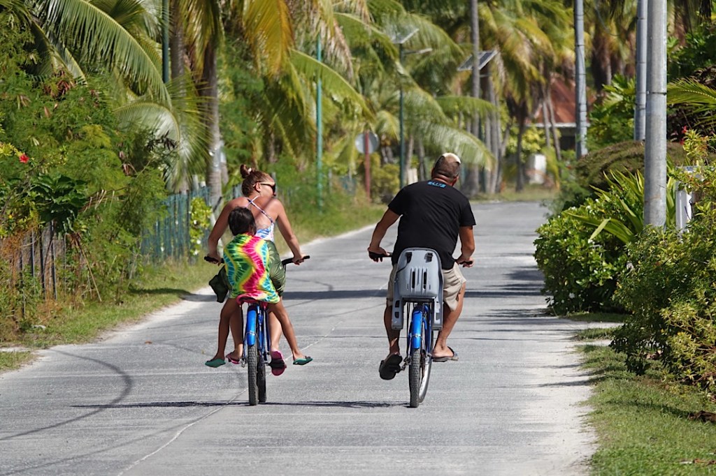Tatsächlich bietet Apataki die einzige uns bekannte Möglichkeit, in den Tuamotus ein Segelboot auf einen Landstellplatz herausnehmen zu lassen. Allerdings wohl mit der Einschränkung, dass der Tiefgang des Bootes nicht über 1,9 m liegen darf. So finden sich denn hier auf dem hinter Palmen versteckten Werftgelände auch fast nur Katamarane und kleinere Segelboote oder solche mit aufholbarem Kiel.