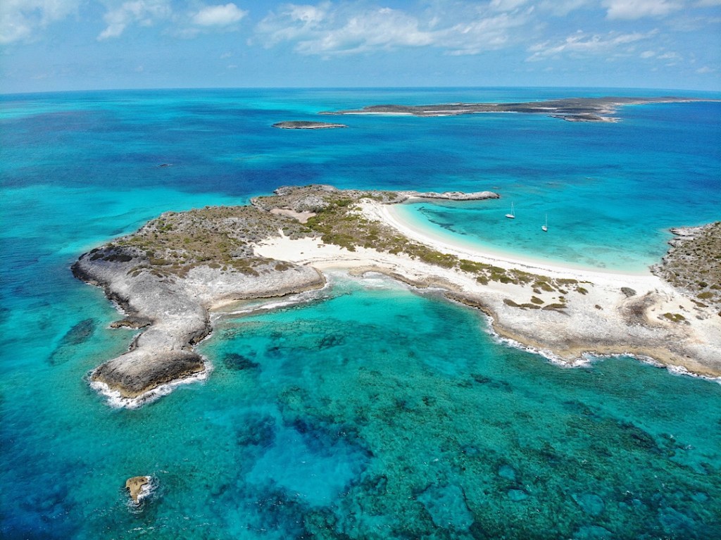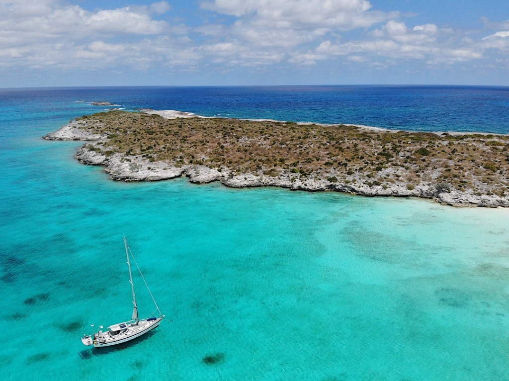 Beim Drohnenflug am nächsten Morgen können wir über unsere Bucht hinweg schon mal einen Blick auf unser nächstes Ziel werfen, die im Osten liegenden „Outer Islands“.