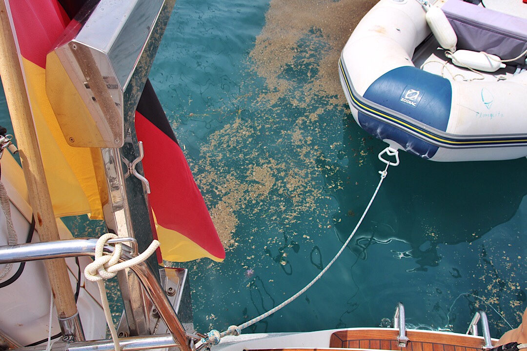 Und wie den Farben angepasst, hat sich bei unserer Rückkehr zur Flora eine kleine Palmtaube auf dem Heck unseres Bootes niedergelassen. Schön, ganz viele Tiere haben wir auf La Graciosa sonst leider nicht entdecken können und irgendwie kommt das von meinen Eltern und unserem Grundschuldirektor früh mit vogelkundlichen Wanderungen geweckte Naturinteresse offenbar immer wieder durch 😉.