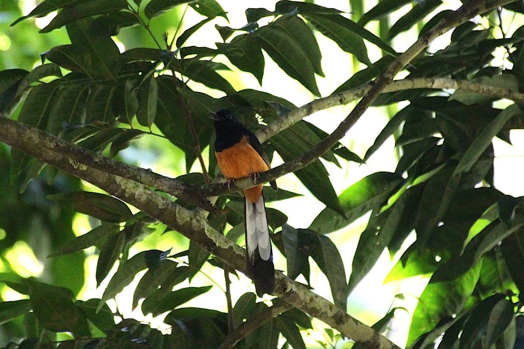 Ein weiterer kleiner Abstecher führt uns in den botanischen Garten von Waimea, der in einem wunderhübschen Tal einen Spaziergang zu einem kleinen Wasserfall sowie zudem einen Einblick in die Hawaiianische Kultur bietet und quasi ein Museumsdorf beinhaltet. Auf besonderen Wunsch einer lieben Segelfreundin (gestern von Bermuda aus geäußert) gehe ich bei dieser Gelegenheit nochmal auf die Vögel dort ein, denn auch in diesem botanischen Garten können wir wieder ganz besondere entdecken, Zum Beispiel diese beiden doch sehr unterschiedlich aussehenden Schamadrosseln: