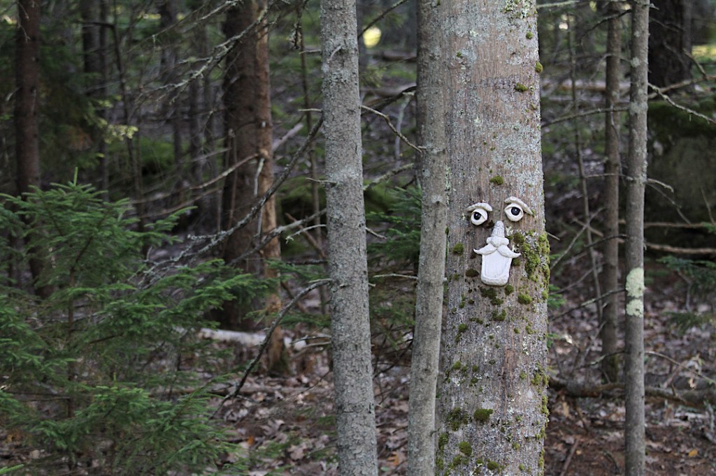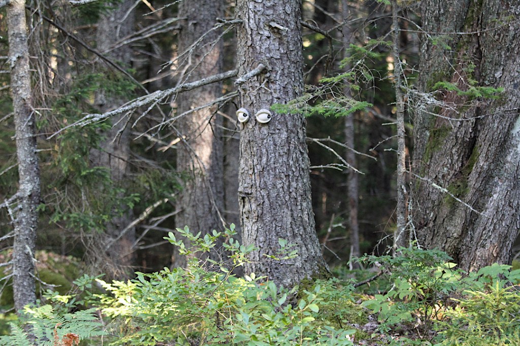 Vor allem aber macht die Wanderung selbst Spaß. Es ist gar nicht so häufig, dass man in BC einfach durch das Gehölz streunern kann, oft ist das Unterholz zu dicht oder das Gelände zu steil. Hier aber passt es. Der Wald ist einfach zauberhaft. Und er beherbergt phantastische (und die Phantasie anregende) Geschöpfe. Oder was schaut da aus dem Baumstumpf heraus?