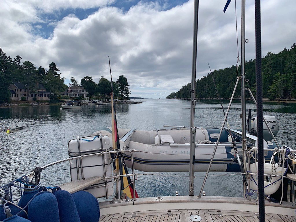 Als wir uns wieder in Richtung unserer Schlauchboote wenden, kommt zu den Phantasiewesen auch noch die Begegnung mit ganz realen Waldbewohnern hinzu: eine Bärenmutter mit ihrem noch ganz jungen Nachwuchs schaut gerade nach, ob sich darin Fressbares finden lässt. Tut es natürlich nicht, da sind wir vorsichtig genug. Aber der Fischgeruch vom Krabbenköder könnte sich schon finden, schließlich bringen wir den Krabbenkorb regelmäßig mit dem Dinghy aus. Normalerweise hält unser Anchor-Buddy ja das Dinghy im tieferen Wasser, aber hier ist es doch mit dem Bug ans Ufer gelangt. Das viel leichtere Dinghy der Solar Coaster haben Melanie und Chris ohnehin gleich hoch auf die Steine gehoben. Wie auch immer, die Bärenmutter entscheidet sich zum Glück gegen das Durchwühlen der Schlauchboote und verlängert damit maßgeblich deren Leben. Aufgeblasene Gummiwülste gegen Krallen von Schwarzbären ist ein ziemlich ungleicher Kampf.